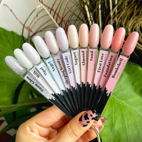 📌 Nota importante: Le basi come Bombshell e First Love, che non contengono glitter, hanno una consistenza diversa rispetto a Angel, Girl Code e Opal, che oltre a particelle fini contengono anche glitter più grandi nascosti.