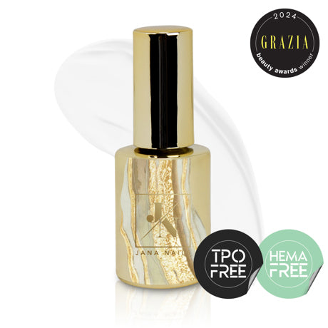 Una texture perfettamente bilanciata, ideale per rinforzare e costruire l’apice (né troppo densa né troppo fluida), con consistenza auto-livellante che velocizza l’applicazione. La base è più dura, ma abbastanza flessibile per adattarsi allo smalto semipermanente e al movimento naturale dell’unghia.