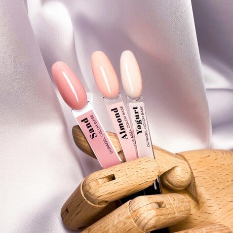 Le basi colore Duragel possono essere applicate direttamente sull’unghia naturale preparata. Per unghie problematiche, così come per basi glitter, si consiglia però di utilizzare prima DuraGel 1 Step. In questo modo, durante refill o rimozione del glitter, non serve limare fino all’unghia naturale.