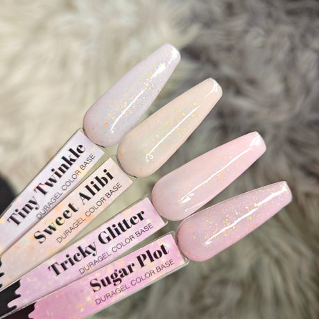 ✨ Tiny Twinkle – tonalità lattiginosa chiara con sottotono rosato, arricchita con particelle riflettenti e flakes glitter