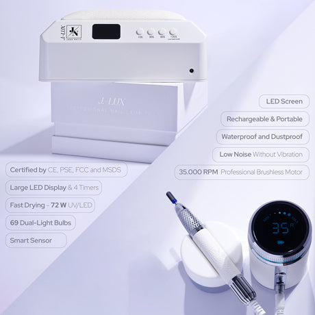 Scopri J.-LUX, una lampada UV/LED professionale con 69 LED e una potenza di 72 W, progettata per una polimerizzazione rapida e uniforme di tutti i gel e semipermanenti.