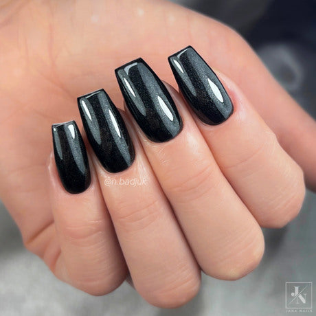 Remarque : certaines teintes sont extrêmement pigmentées et contiennent un mélange de particules holographiques. Ces couleurs très foncées – comme Scorpio – doivent être catalysées en une seule couche pendant au moins 120 secondes, ou en deux couches très fines.