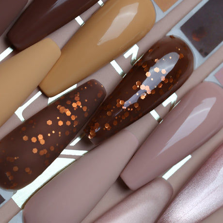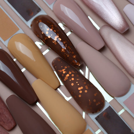🔥 À l’achat du coffret complet Tra le Calli, recevez en cadeau le top coat brun semi-transparent Sweet Sin, enrichi d’hexagones bruns de différentes tailles et de particules scintillantes.